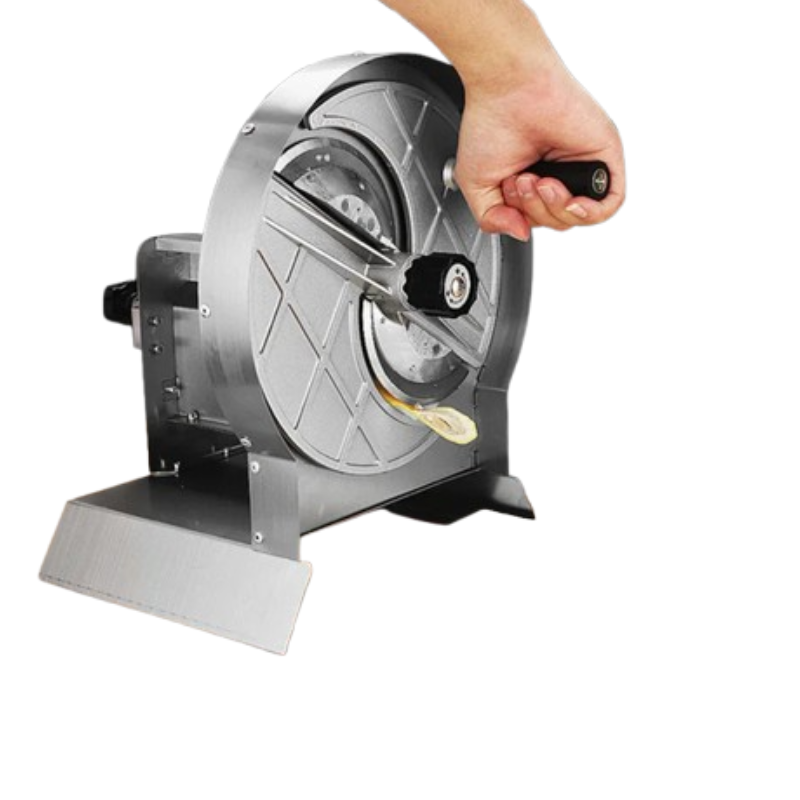 Une trancheuse manuelle est un outil ou appareil qui permet de couper rapidement et uniformément des aliments en tranches fines ou épaisses, sans moteur électrique.